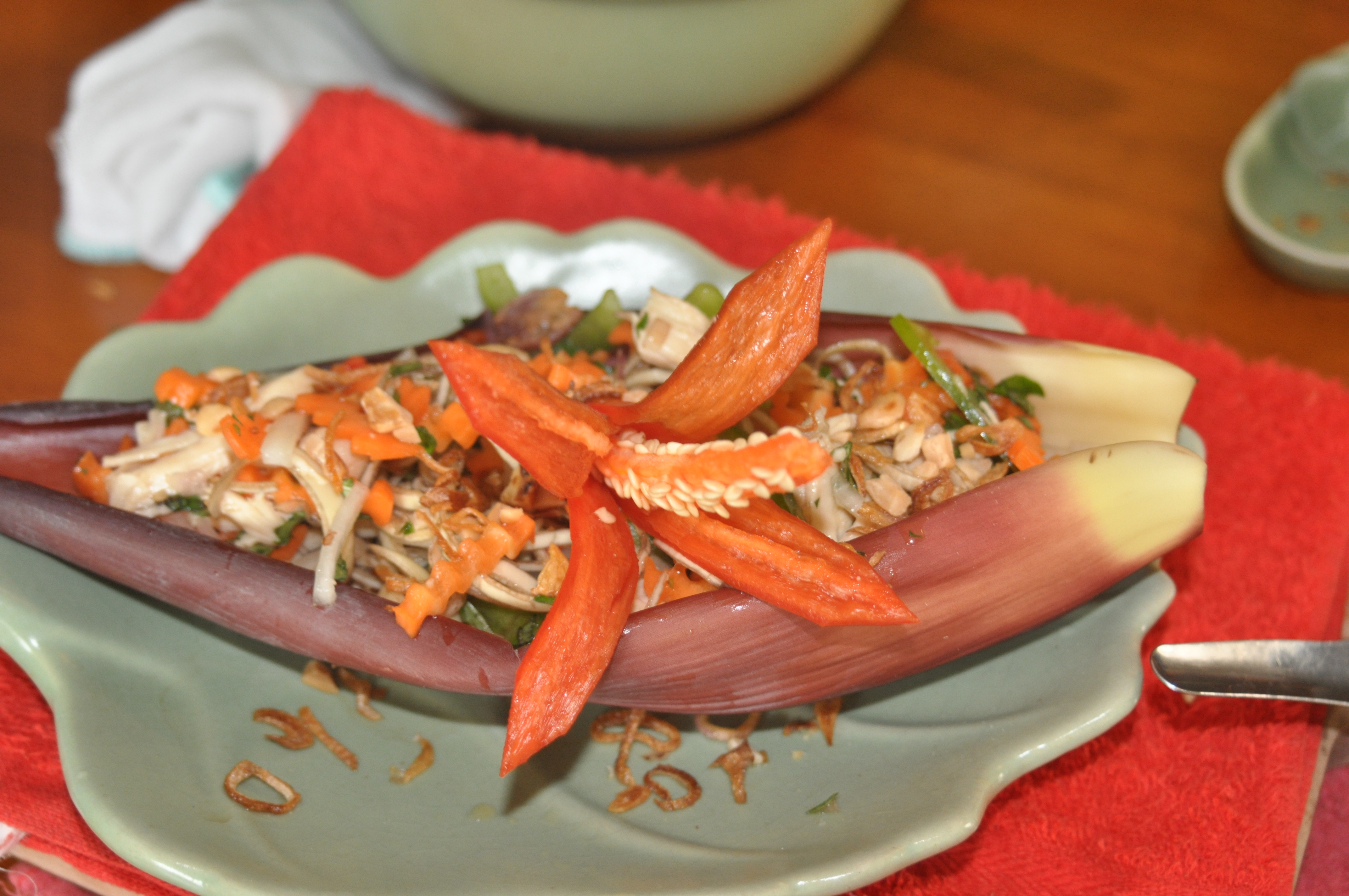 Vietnamese banana blossom salad with shredded chicken: